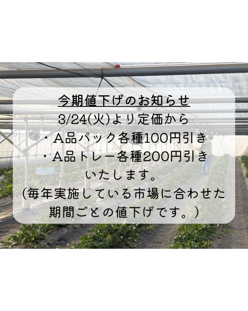 また、3月24日(火)より以下の時期に応じた値下げを実施しております。